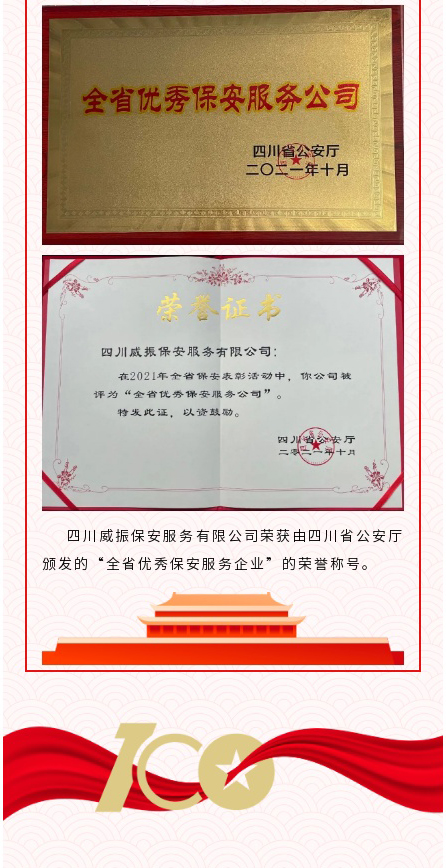 四川威振荣获全省优秀保安服务公司荣誉