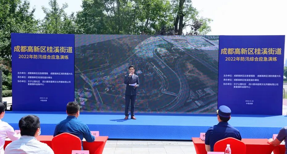 2022年5月16日下午14:30分,由成都市高新区应急管理局、成都市高新区消防救援大队主办、成都市高新区桂溪街道办承办的2022年防汛综合应急演练,在复兴国际金融中心举行,本次演习的队伍来自成都高新区桂溪街道综合应急救援队、成都高新区桂溪社区卫生服务中心、桂溪街道交子公园社区应急救援分队、成都市消防救援支队特勤大队二站、国网成都高新供电分公司南区供电所、成都燃气高新服务中心、四川公羊救援队、E乐彩复兴国际金融中心项目部等8支队伍的120余人参加演练。四川威振的25名员工提前准备、提前培训。圆满完成本次综合应急演习。