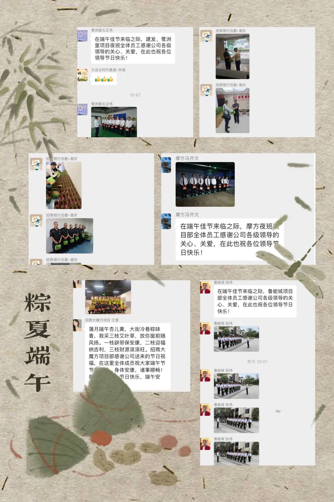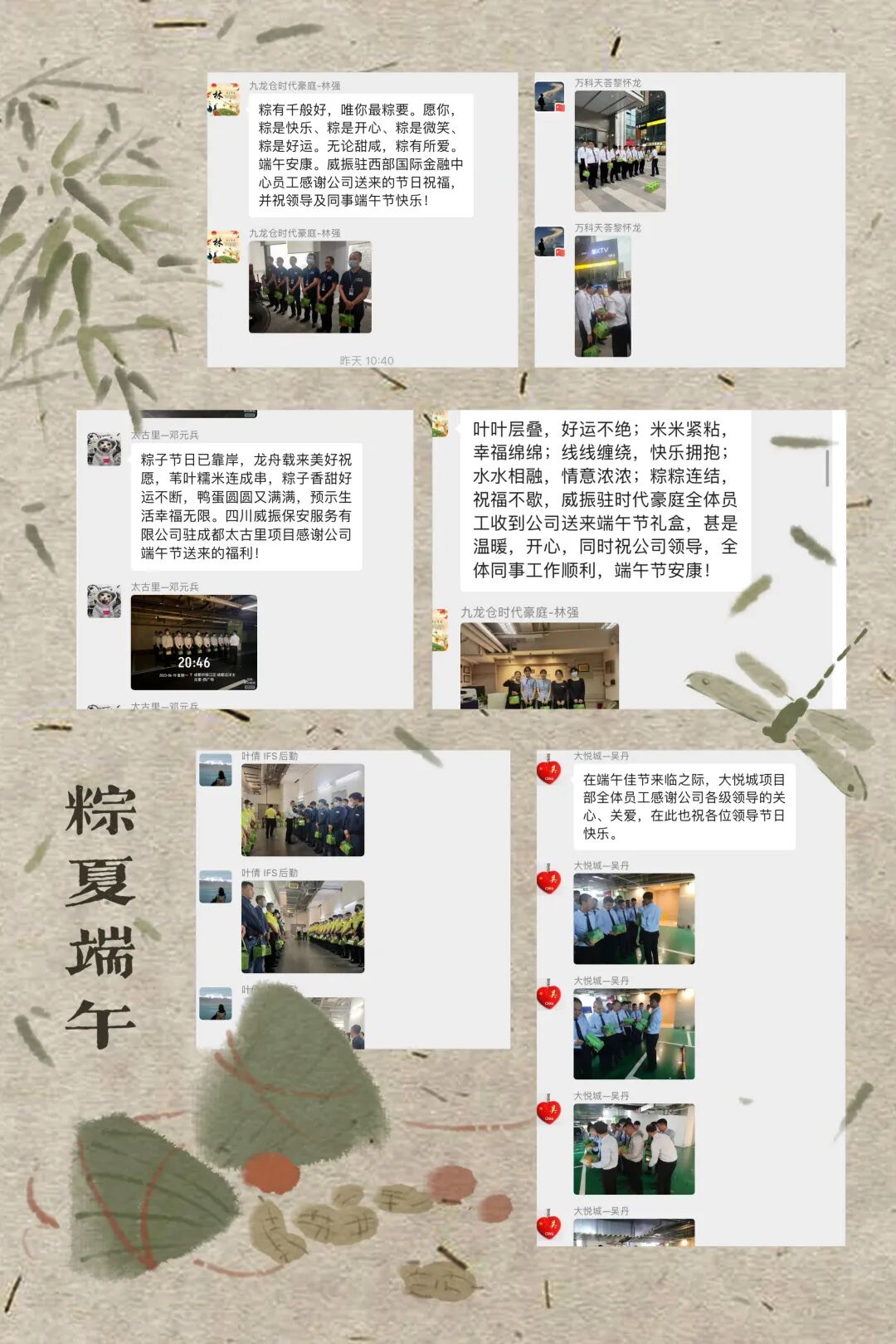 “真的很高兴在端午来临之际能够收到公司的关心关怀,还送来了粽子,让我在平凡的岗位上真真切切的感受到了温暖,我将全力以赴做好端午执勤值工作,以实际行动确保大家能够过个平安喜乐的端午节。”员工发自内心的感叹。