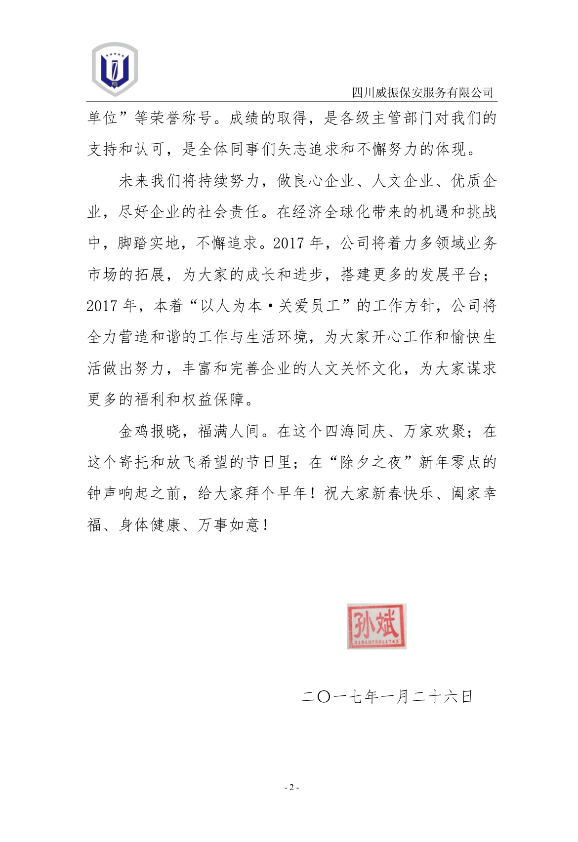 金鸡报晓 福满人间--四川威振保安2017年新春贺词