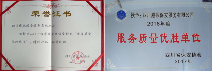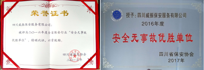 E乐彩成立于2011年3月,经过六年的时间发展成为了一家拥有一流的安保队伍、科学规范的管理理念、良好社会效益的专业安保公司。本次评选活动过程中,我司经过市公安局治安支队严格评选审核、省厅治安总队和省保安协会综合审定后,从全省200多家保安公司中脱颖而出。至此,继2016年10月我司被公安部、全国总工会、共青团中央授予第四届“全国先进保安服务公司”荣誉称号之后,又蝉联“全省先进保安服务公司”、“安全无事故优胜单位”、“服务质量优胜单位”荣誉称号。