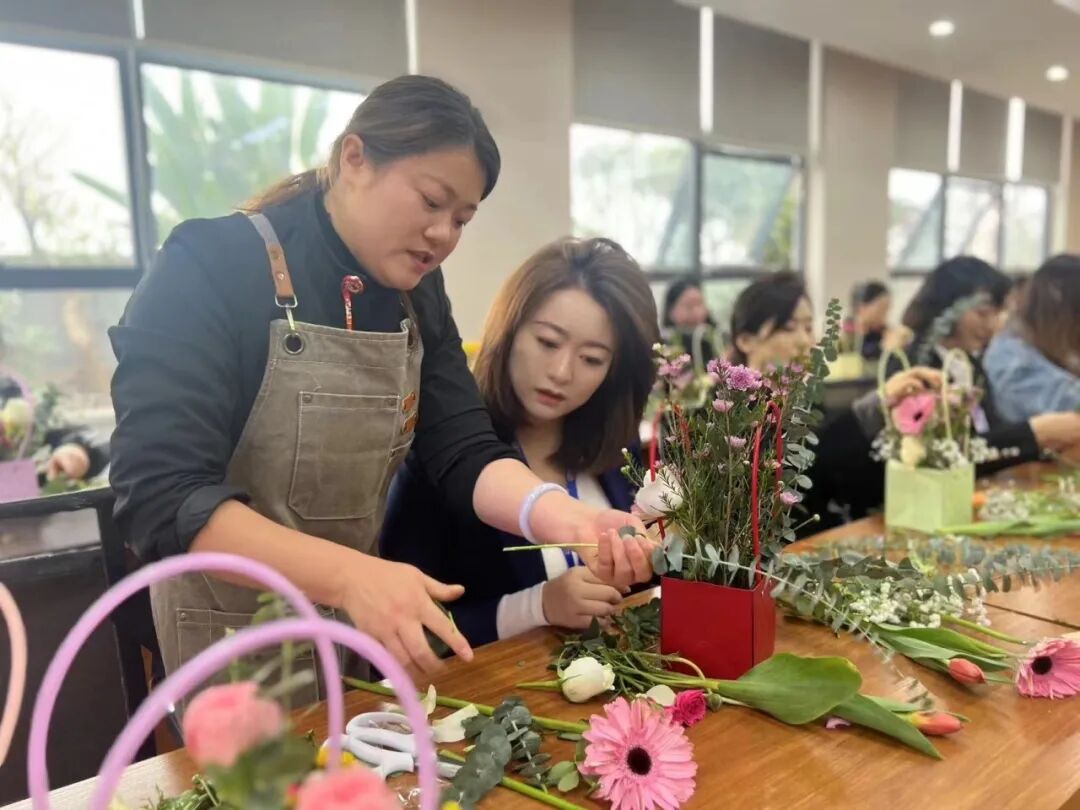 在接下来的插花中,大家热情高涨,纷纷动手尝试,将一朵朵花巧妙地搭配在一起,创作出了精美的插花作品。有的员工大胆尝试新的制作手法,创作出了别具一格的作品;有的则在制作过程中相互学习、交流心得,增进了彼此的了解和友谊,增强了员工的获得感、幸福感。