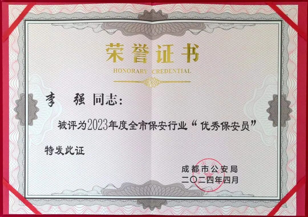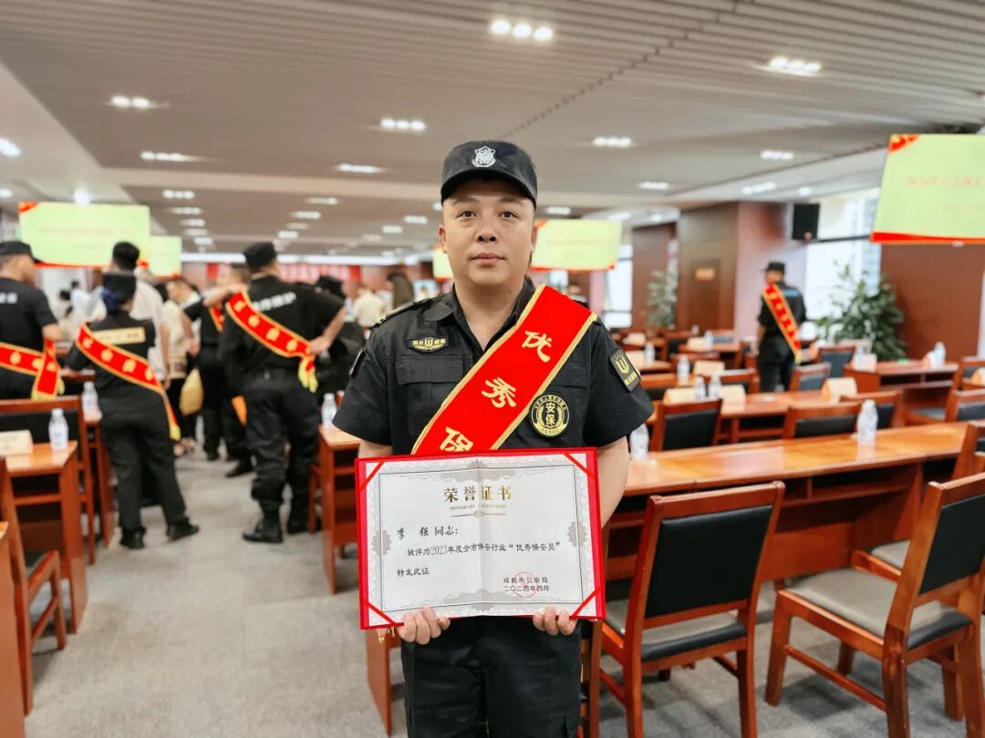 在这个值得铭记的时刻,我们要热烈祝贺E乐彩总经理助理李强荣获成都市公安局授予的2023年度全市保安行业“优秀保安员”荣誉称号。