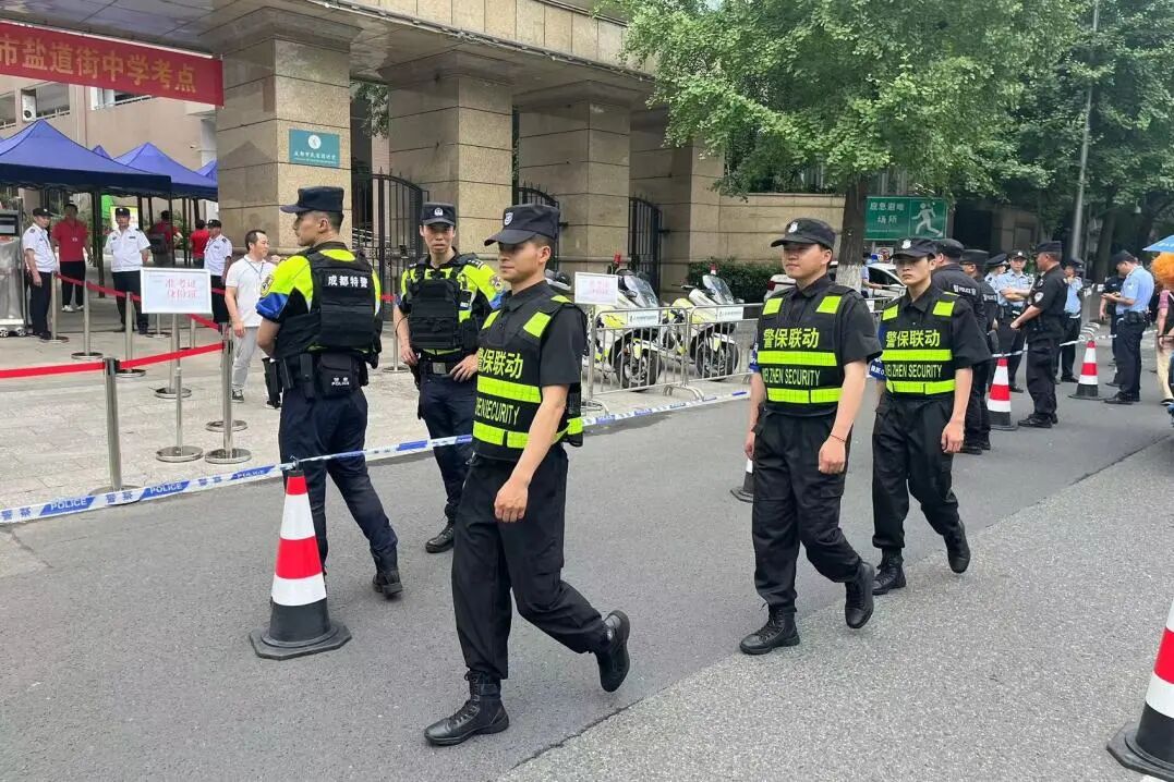 为确保高考期间各考点及周边区域的安全稳定,按照成都市公安局以及各分局的统一部署,我司特此抽调了一批经验丰富、业务精湛的保安人员,提前进行专项培训和部署。他们与警方协同作战,在考点周边设立执勤点,加强巡逻防控,维护现场秩序,及时处置各类突发情况。