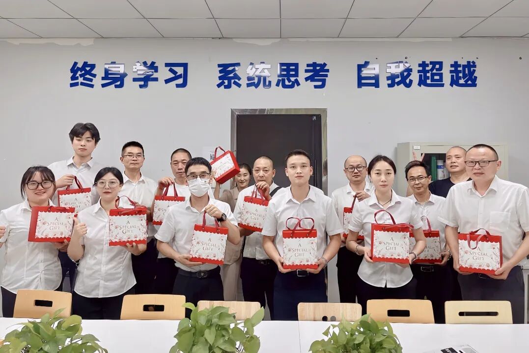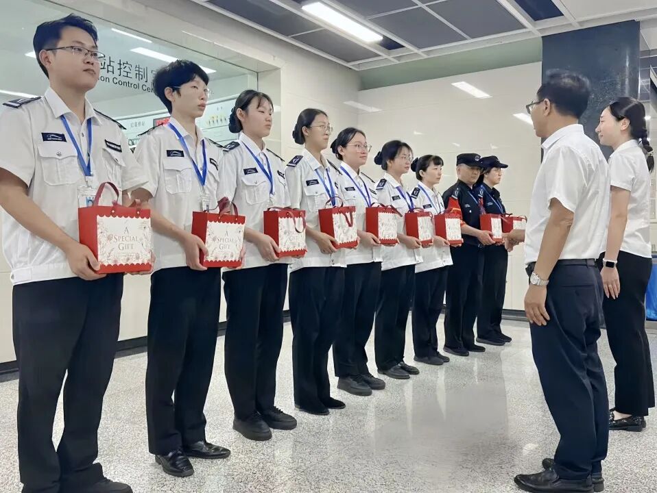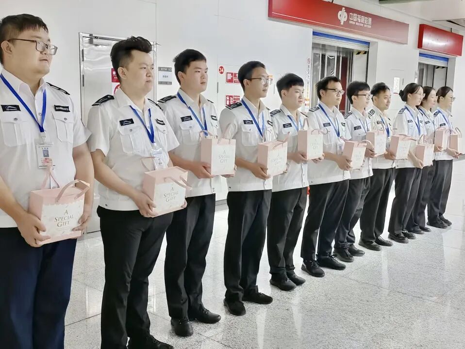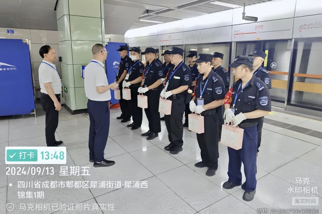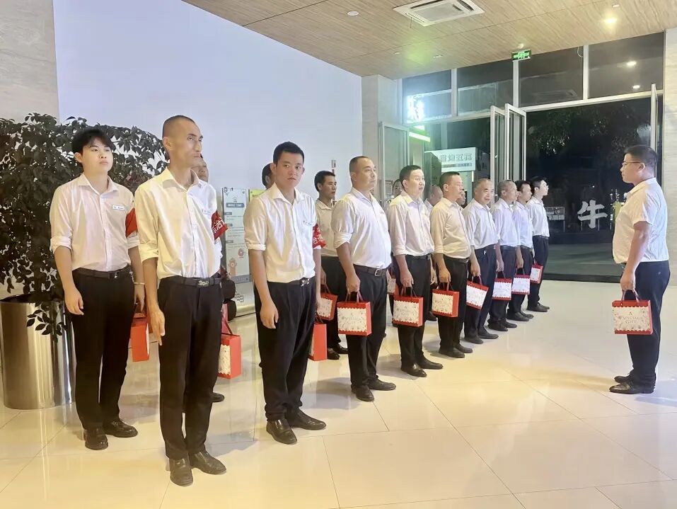 在中秋佳节来临之际,公司各项目负责人带着月饼来到项目上向这些辛勤付出的保安们表达诚挚的问候与感谢。每一份礼品都承载着公司对员工的关爱与祝福。员工们备受鼓舞,纷纷表示将继续以高度的责任感和使命感,为守护项目安全贡献自己的力量。