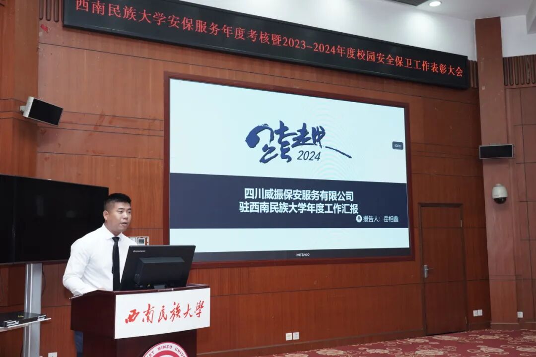 这次会议既是对过去一年校园安保工作的总结与回顾,也是对未来工作的展望与激励。相信在公司的科学管理和学校的大力支持下,四川威振驻西南民族大学的保安团队将以更加饱满的热情、更加昂扬的斗志、更加扎实的作风,继续为校园的安全稳定保驾护航,为建设平安和谐校园做出新的更大贡献。