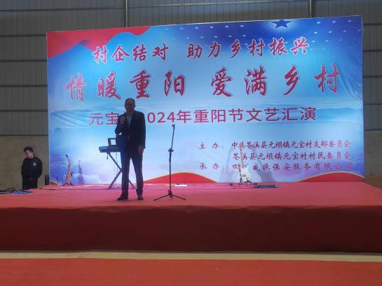 本次活动,总经理张波首先感谢元坝镇党委元宝村支委的信任,我司有幸承办本次主题爱老敬老活动,意义非凡,祝愿所有老人健康长寿,晚年幸福。同时他表示“万企进万村”是乡村振兴战略的重要组成部分,我司能够参与其中,感到无比荣幸。未来,我司将积极履行自身肩负的社会责任,关注乡村老人就医、儿童就学等社会公益活动,为乡村振兴战略的全面实施贡献绵薄之力。