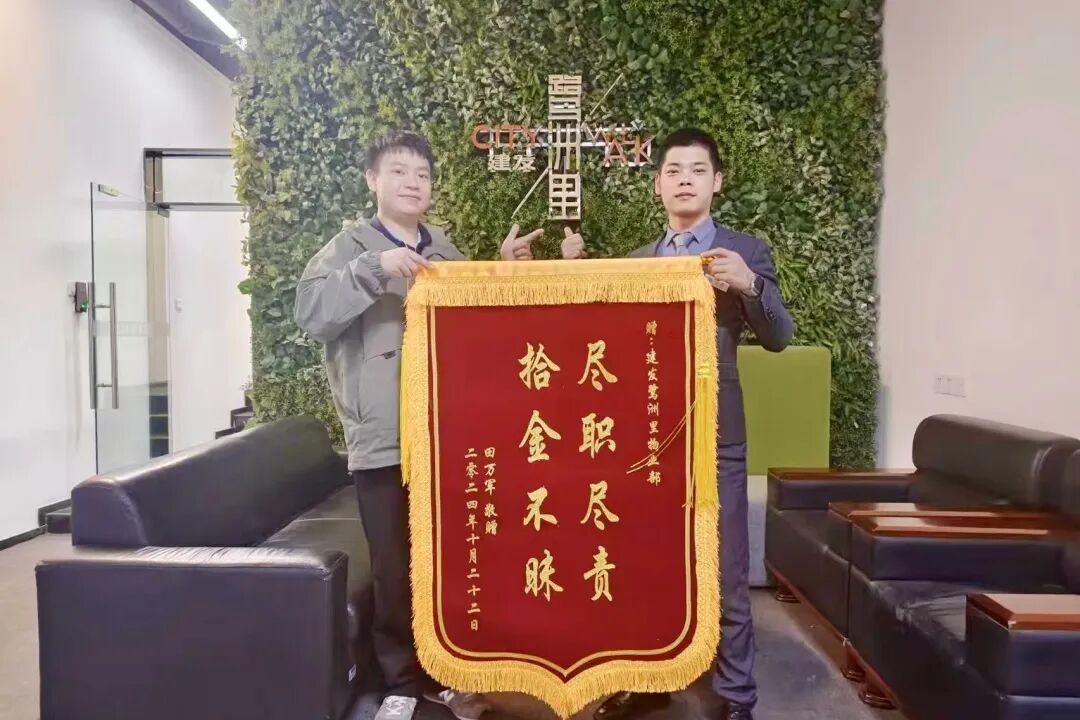 失主为表达感激之情,本意赠予五百元作为感谢,但被唐彤婉言谢绝。为表达对唐彤拾金不昧行为的敬意,失主特地前往鹭洲里物业部,赠送了一面写有“拾金不昧,尽心尽责”的锦旗。唐彤的这一行为,不仅彰显了其个人的高尚品质,更是威振保安公司企业文化和价值观的真实写照。