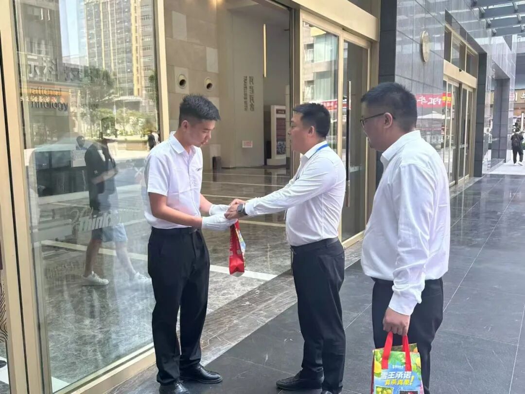 公司领导在慰问中表示:“一线员工是威振最坚实的根基。你们用汗水守护客户安全,公司必以行动守护你们的健康。这份清凉是心意,更是对大家辛勤付出的崇高致敬!” 本次活动覆盖公司服务的数十个项目点,惠及全体一线保安员。