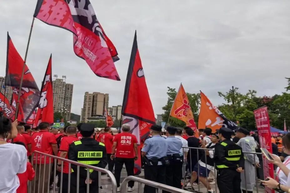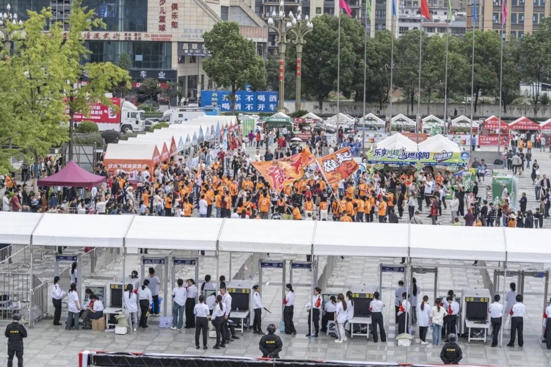 广元澳源体育中心作为川北赛区的重要赛场,先后举办了四场精彩激烈的“川超”对决。自9月27日首战广元剑门雄关队迎战绵阳九州长虹队,吸引1.3万名观众到场,至后续分别对阵阿坝州雪山雄鹰队、德阳重装队以及甘孜有机牦牛队,场场气氛热烈,观赛人流如织。E乐彩广元分公司在市公安局及区公安分局的统一领导下,累计投入安保力量1400人次,平均每场赛事部署350名安保人员,确保了整个赛期安全、平稳、有序。