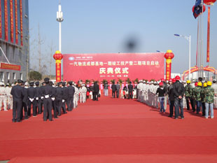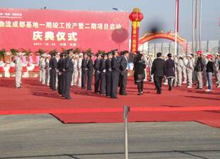 2011年10月29日,一汽物流成都基地一期竣工投产暨二期项目启动庆典仪式在成都经济技术开发区隆重举行,市委常委、成都汽车产业综合功能区领导小组组长刘超出席仪式并致辞。市长助理陈争鸣,一汽集团副总经理、一汽物流董事长秦焕明等参加仪式。我公司应邀担任本次庆典仪式的安保工作。