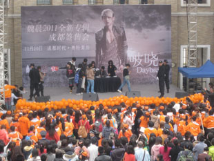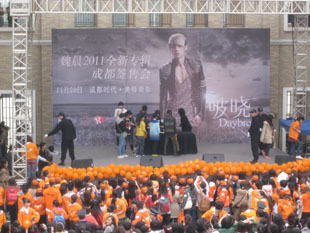 2011年11月20日,魏晨签唱会在成都时代·奥特莱斯举行。我公司受邀全程护卫签唱会现场安全秩序。