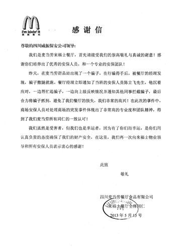 感 谢 信